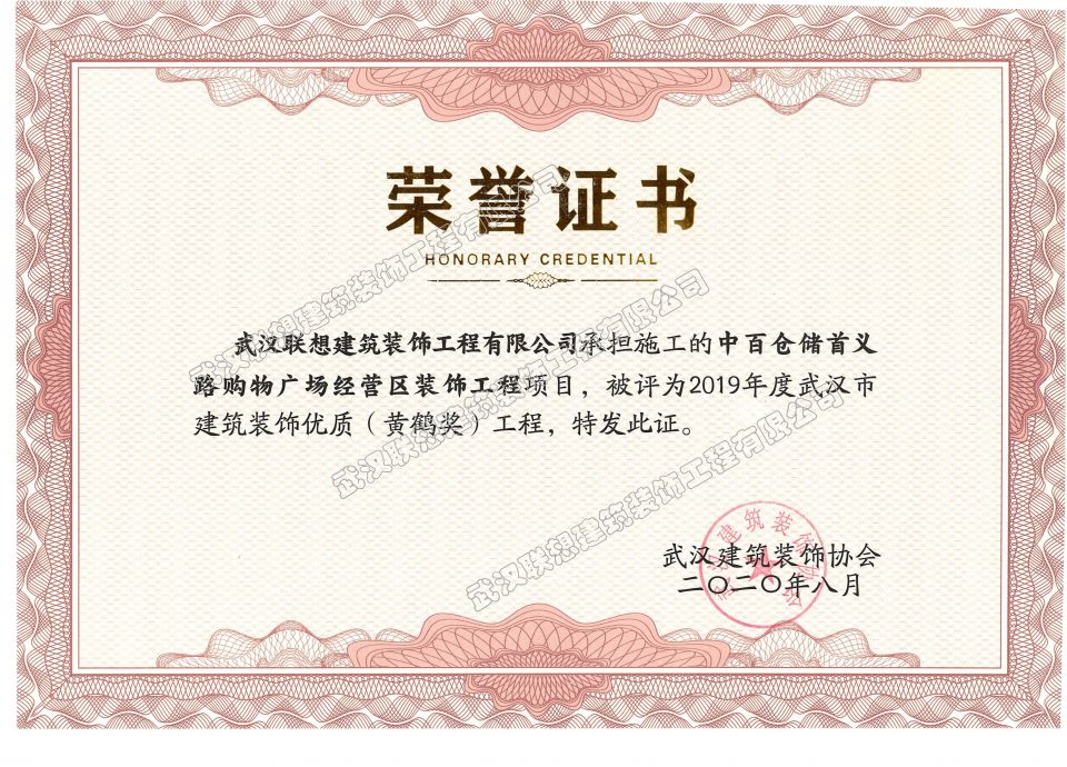2019年度武漢市建筑裝飾工程黃鶴杯(中百倉儲首義路購物廣場經(jīng)營區(qū)裝飾工程)