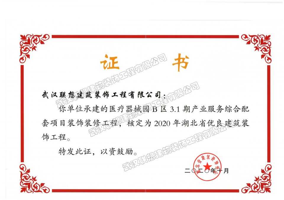 2020年湖北省優(yōu)良建筑裝飾工程(醫(yī)療器械園B區(qū)3.1期產(chǎn)業(yè)服務(wù)綜合配套項目裝飾工程)