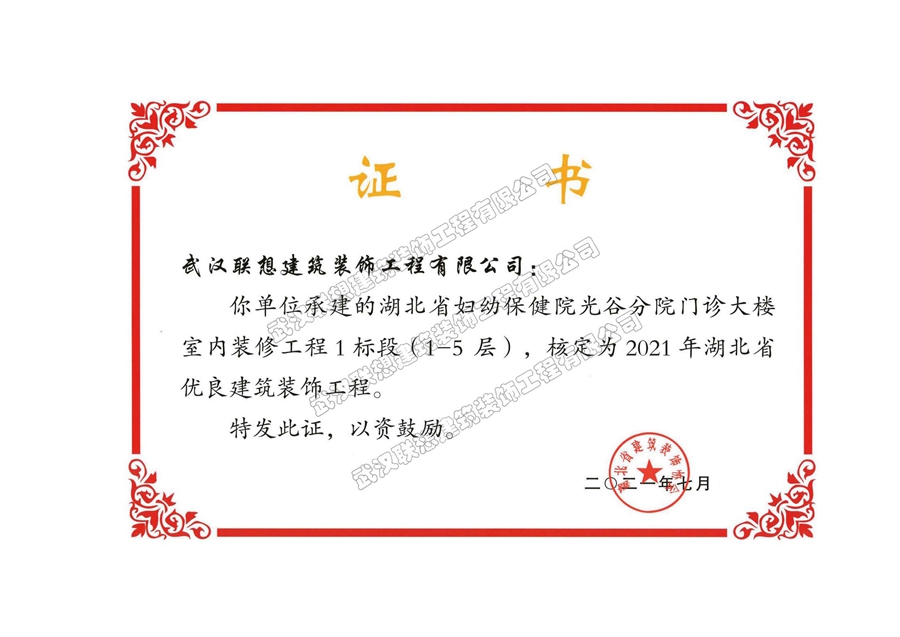 2021年度湖北省優(yōu)良建筑工程(湖北省婦幼保健院光谷分院門診大樓室內(nèi)裝修工程1標(biāo)段(1-5層))