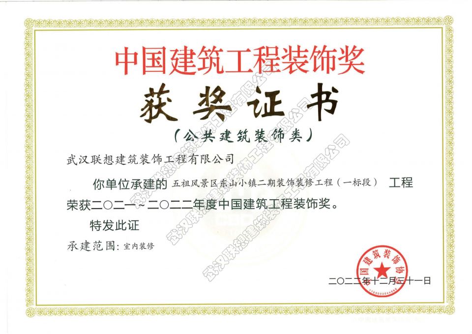 2021-2022年度中國建筑工程裝飾獎(五祖風(fēng)景區(qū)東山小鎮(zhèn)二期裝飾裝修工程(一標(biāo)段))