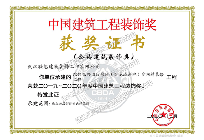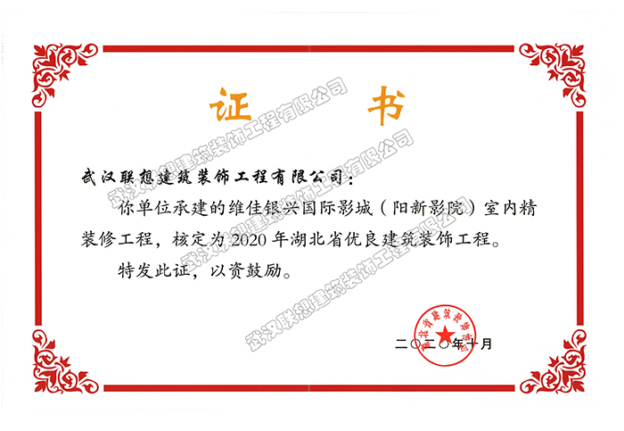 2020年湖北省優(yōu)良建筑裝飾工程(維佳銀興國際影城(陽新影院)室內(nèi)精裝修)