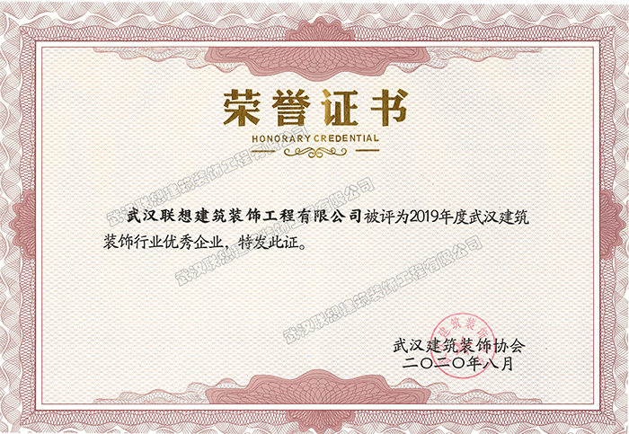 2020年度武漢建筑裝飾行業(yè)優(yōu)秀企業(yè)