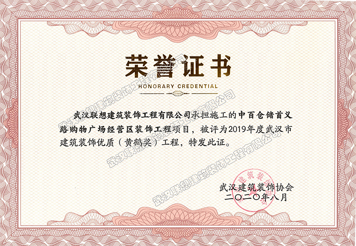 2019年度武漢市建筑裝飾工程黃鶴杯(中百倉儲首義路購物廣場經(jīng)營區(qū)裝飾工程)