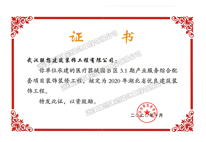 2020年湖北省優(yōu)良建筑裝飾工程(醫(yī)療器械園B區(qū)3.1期產(chǎn)業(yè)服務綜合配套項目裝飾工程)