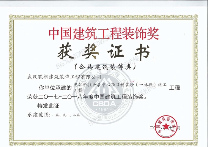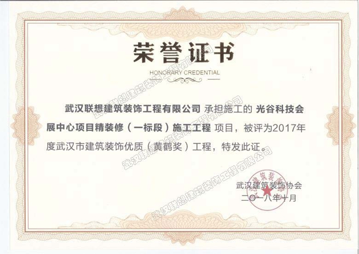 2017年度武漢市建筑裝飾優(yōu)質(zhì)工程黃鶴杯(光谷科技會(huì)展中心項(xiàng)目精裝修)