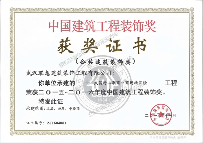 2015-2016年度中國建筑工程裝飾獎(jiǎng)(武昌府二期商業(yè)商場(chǎng)精裝修工程)