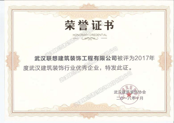 2017年度武漢建筑裝飾行業(yè)優(yōu)秀企業(yè)