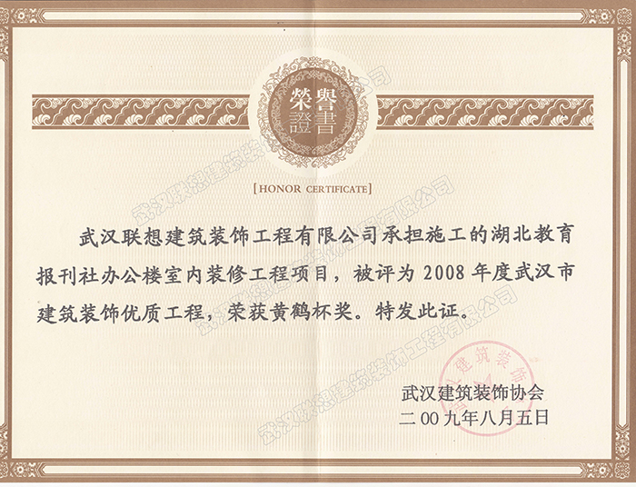 2008年度武漢建筑裝飾優(yōu)質工程黃鶴杯(湖北教育報刊辦公樓室內裝修工程)