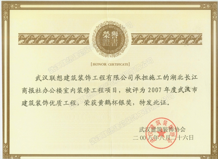 2007年度武漢建筑裝飾優(yōu)質工程黃鶴杯(湖北長江商報社辦公樓室內裝修工程)