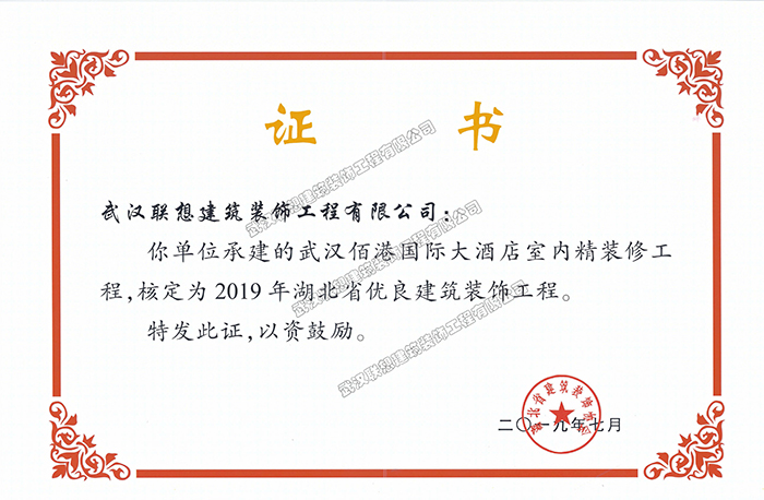 2019年湖北省優(yōu)良建筑裝飾工程(武漢佰港國際大酒店室內(nèi)精裝修工程)