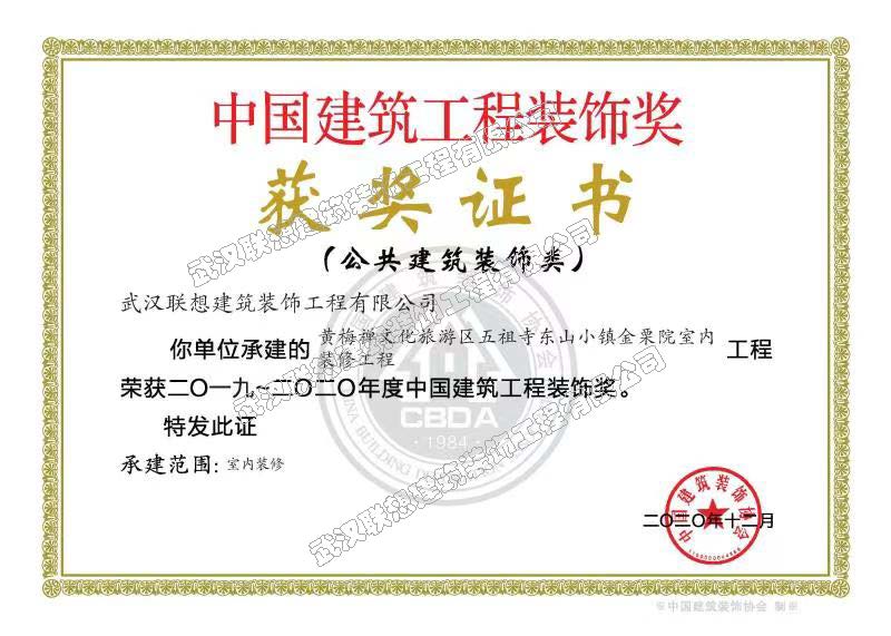 2019-2020年度中國建筑裝飾獎(黃梅禪文化旅游區(qū)五祖寺東山小鎮(zhèn)金栗院室內(nèi)工程)