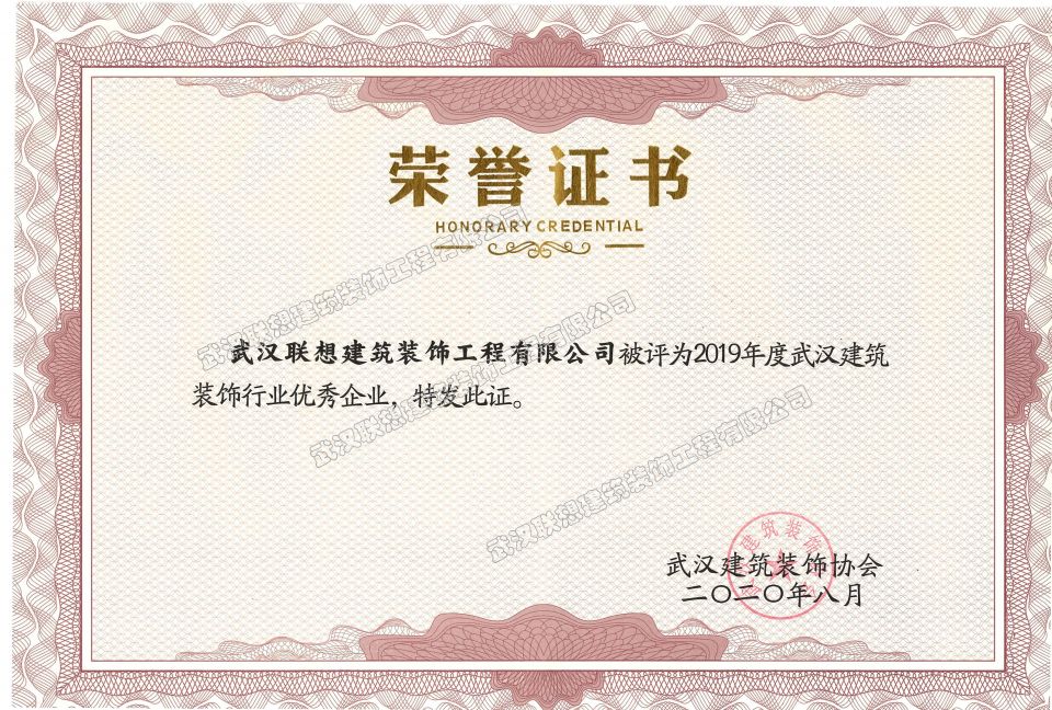 2019年度武漢建筑裝飾行業(yè)優(yōu)秀企業(yè)