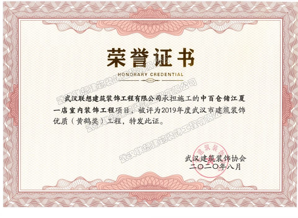 2019年度武漢市建筑裝飾優(yōu)質(zhì)工程黃鶴杯(中百倉(cāng)儲(chǔ)江夏一店室內(nèi)裝飾工程)